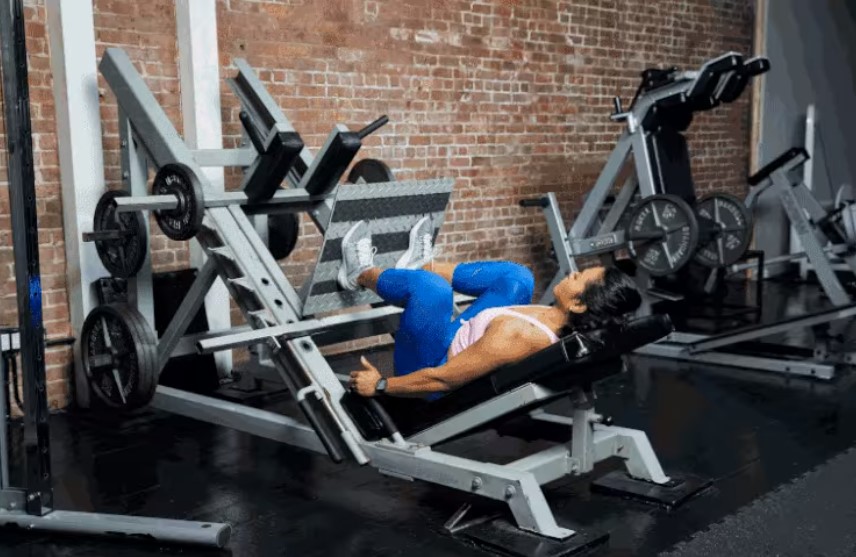 The leg press machine allows you to get some of the benefits of a barbell squat for developing the quadriceps. Secondarily, It causes the gluteus maximus to grow, hamstrings, and calves.